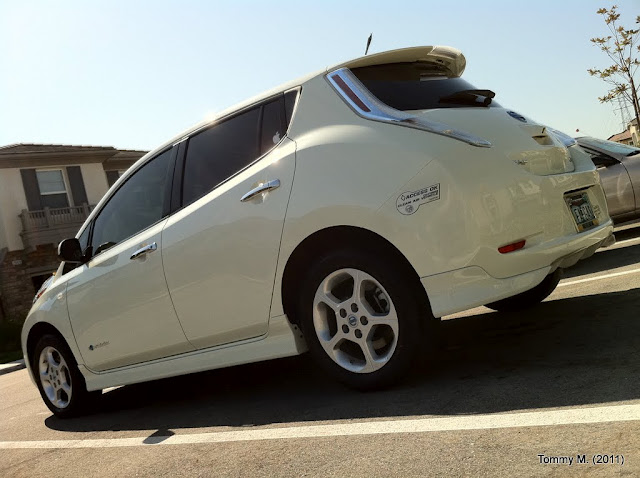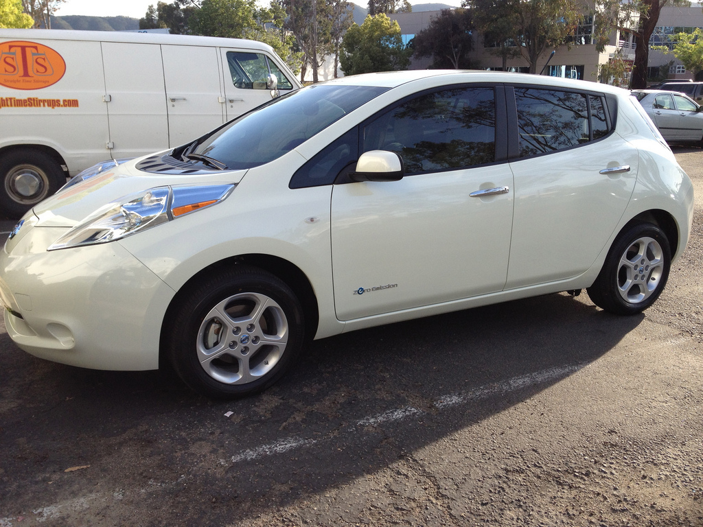 - White 2011 LEAF w/ matt black “wrap” on hood, roof and hatch