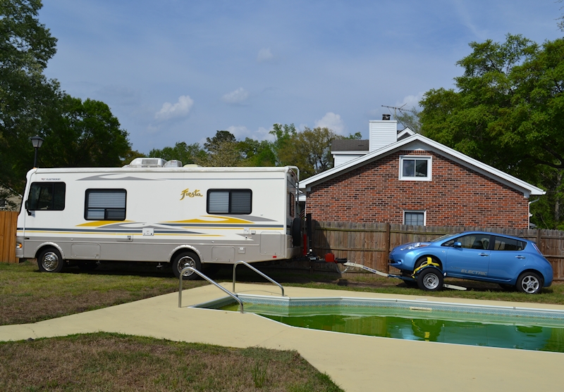 - Towing: a LEAF being towed on a dolly behind a motor home: