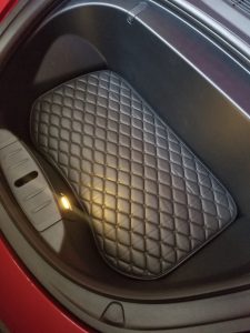 September 17, 2019 This padded, protective mat for the frunk on the Tesla Model 3 has a fancy sewn pattern and seems to fit well into the frunk