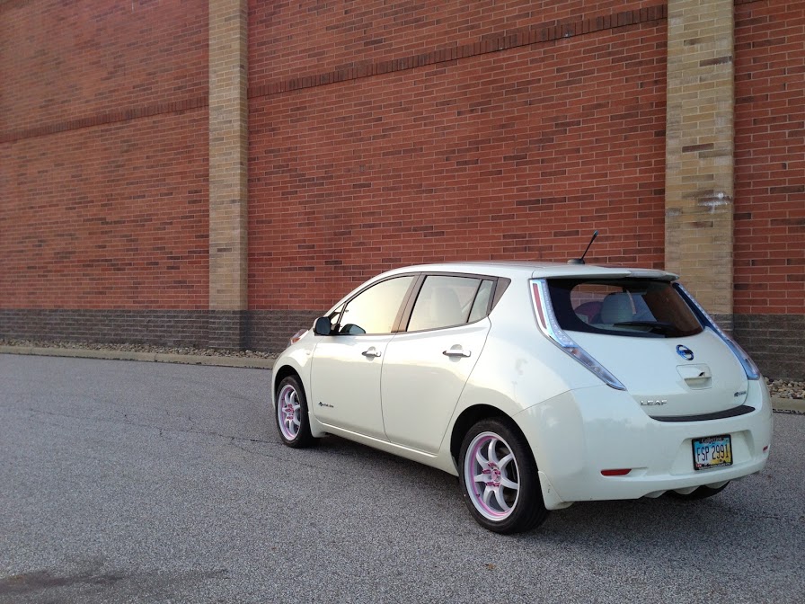 - 2012 LEAF with Nissan Juke wheels (17×7, 47mm offset, 22.6lbs) & Continental Extreme Contact DWS 215/45R17 tires: